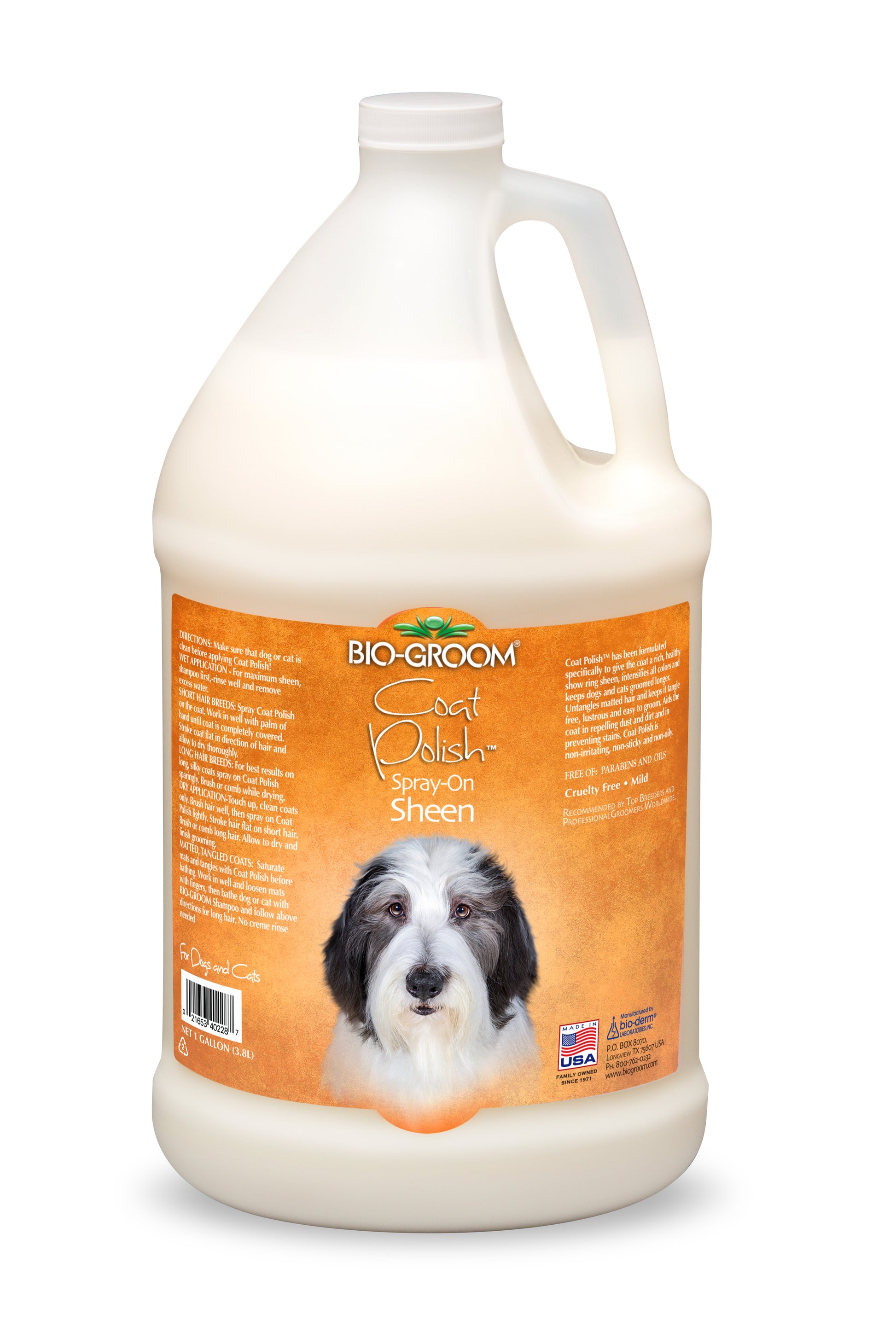 - Coat Polish™ is a dog coat glosser and tangle remover